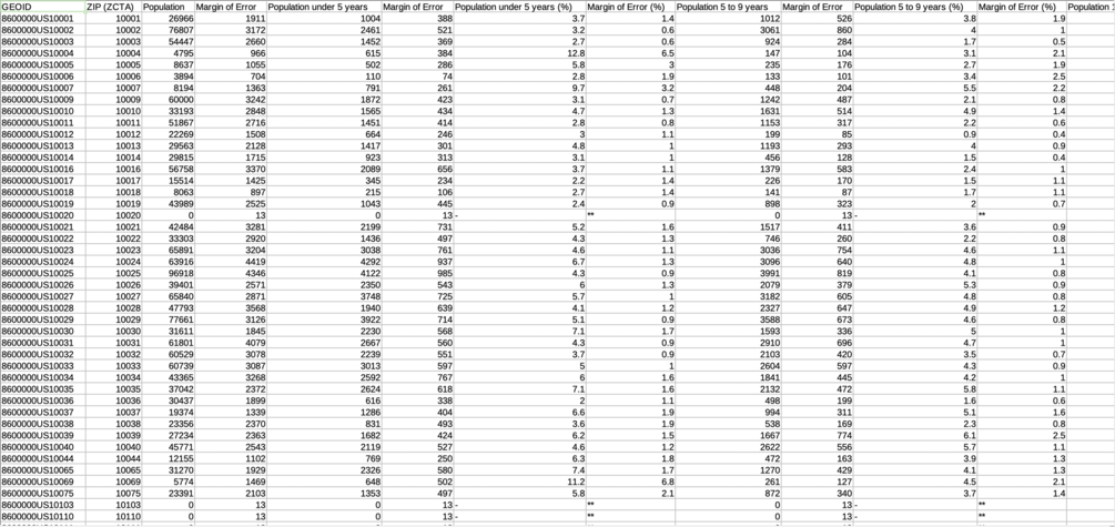 Censtats: New York City, NY (2021) offers a curated and pre-formatted collection of data sourced from the United States Census and the American Community Survey's 5-year estimates for 2021. This data comes in the form of a comprehensive XLSX file as well as individual CSV and JSON files.